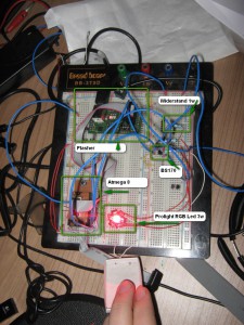 Ich habe mir eine Prolight RGB Led mit 3 Watt und gemeinsamer Anode gekauft und sie gleich mal angeschlossen. Hierfür waren nur ein paar Widerstände + 3x BS170 Mosfet Transistoren nötig, dazu noch ein Atmega8 der die Software PWM erledigt… Fertig.