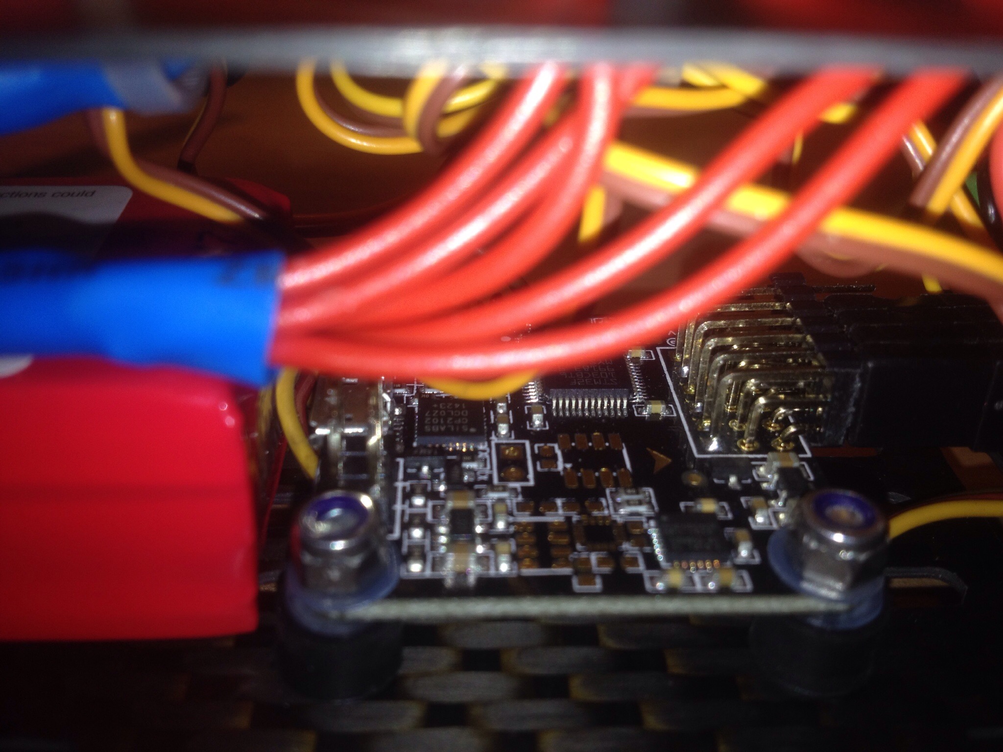 Nach dem der Quadroder zusammengebaut war ging es an die Software und die Anbindung an die Fernbedienung. Was ich vorher nicht bemerkt hatte war, dass die Regler kein BEC haben, also keinen Strom über den Stecker, der zur Flight Control Naze32 geht führen. Das heisst, dass alles Strom hat, bis auf den Regler und der Empfänger. Also habe ich kurzerhand einen uBEC auf Ebay für 7€ geschossen und diesen eingebaut, damit alles soweit versorgt ist.